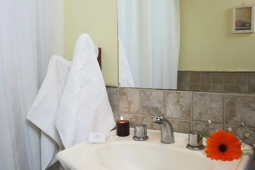 Baño con ducha y secador de pelo.